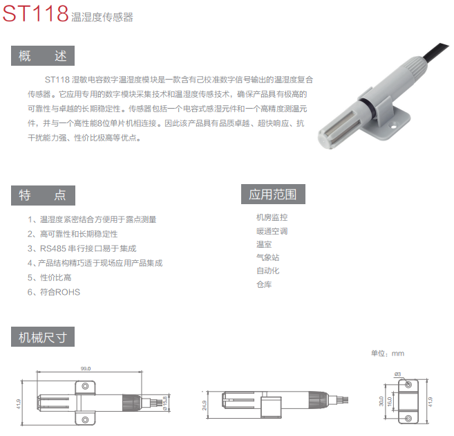 数字信号输出的温湿度复合型传感器,广泛应用于机械温度、冷链车等设备的温湿度检测。